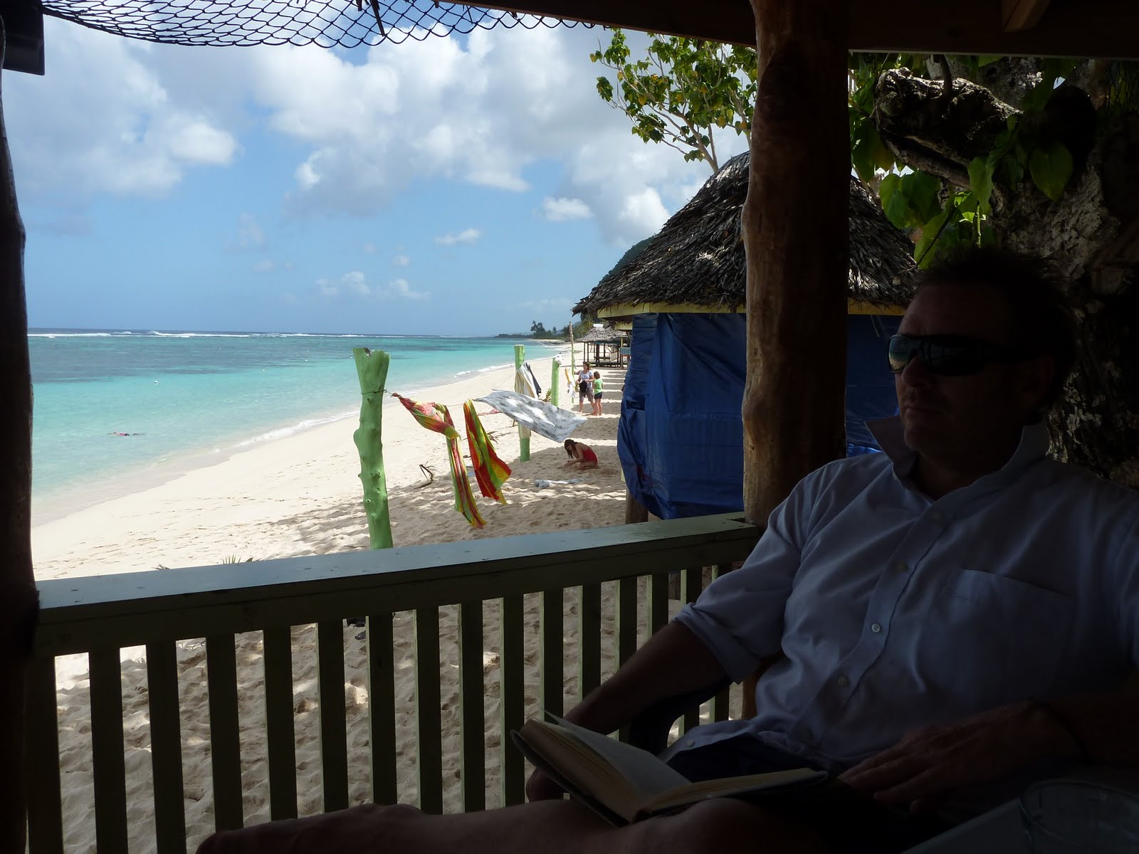 Our fale from the outside. The girls spent a lot of time playing under the fale; mostly with a colony of hermit crabs!
